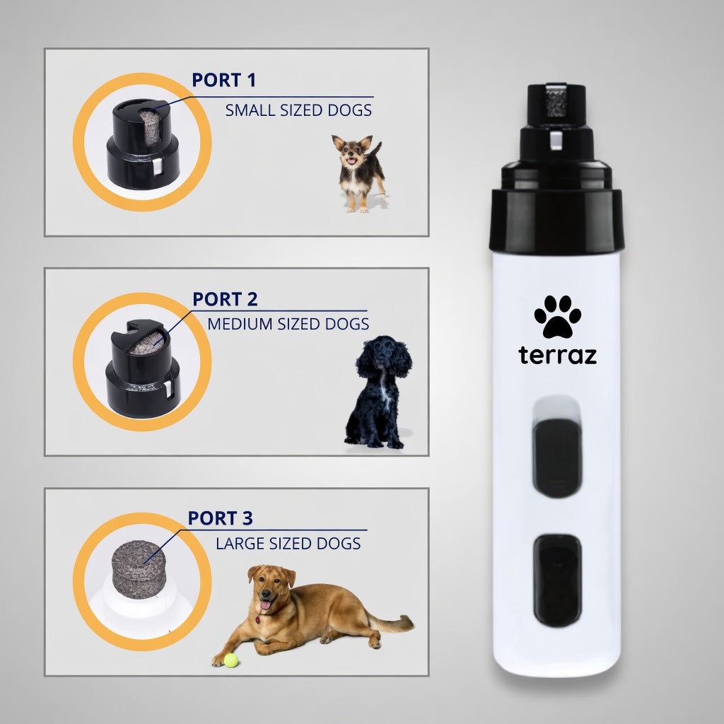 The Silent Groom Pro is specifically designed for all pet sizes and nail thickness levels. It comes equipped with three unique grinding ports and dual-speed settings,